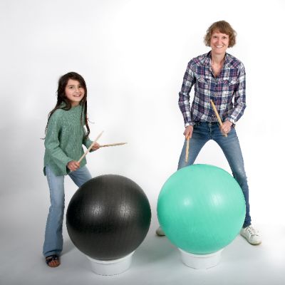 Wir trommeln mit Drum Sticks auf Pezzibällen während wir uns zur Musik bewegen und einfache Choreografien umsetzen.